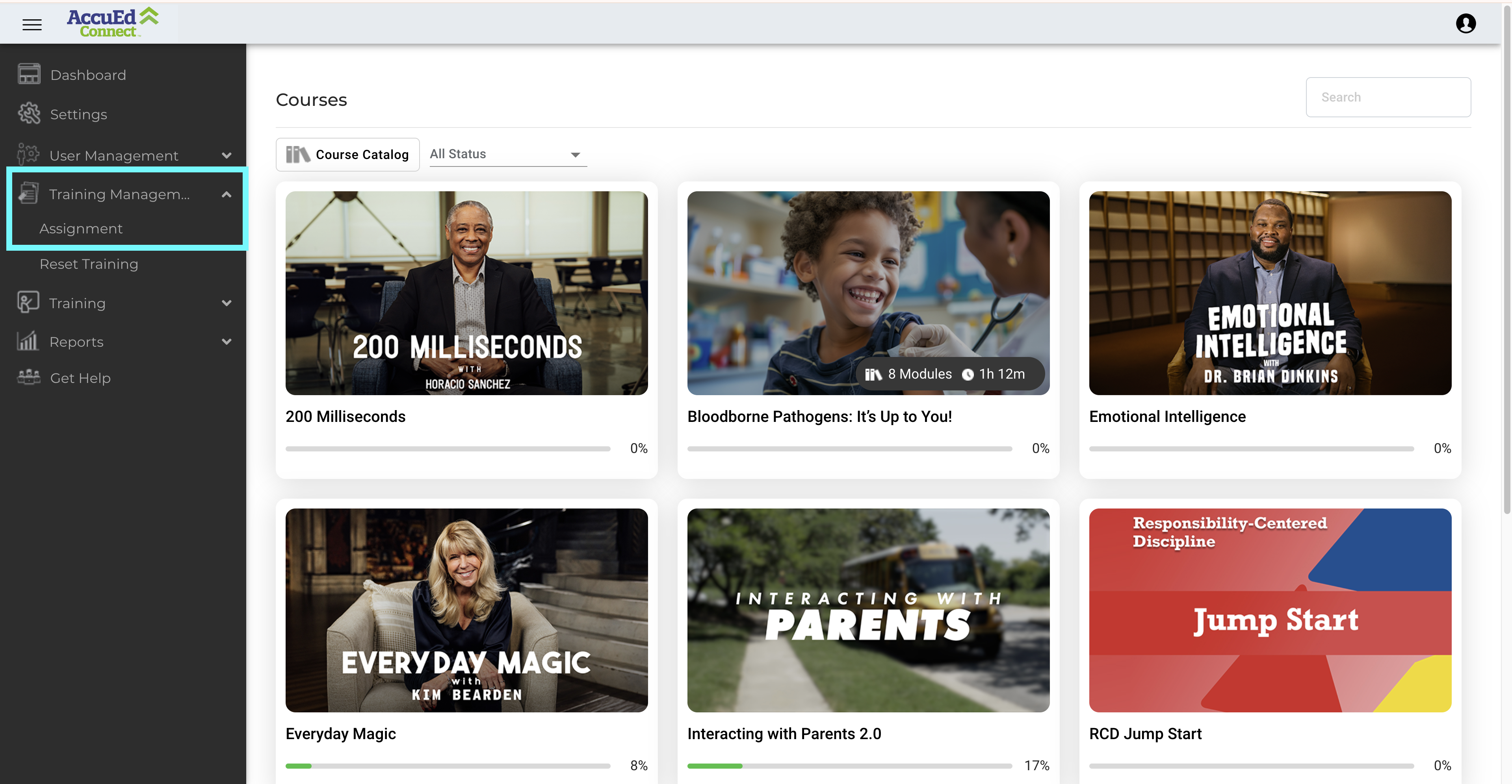 assignments.You can then select what courses to assign. (When a course has been selected the bubble will turn from white to green.)